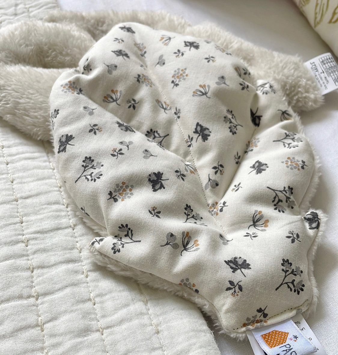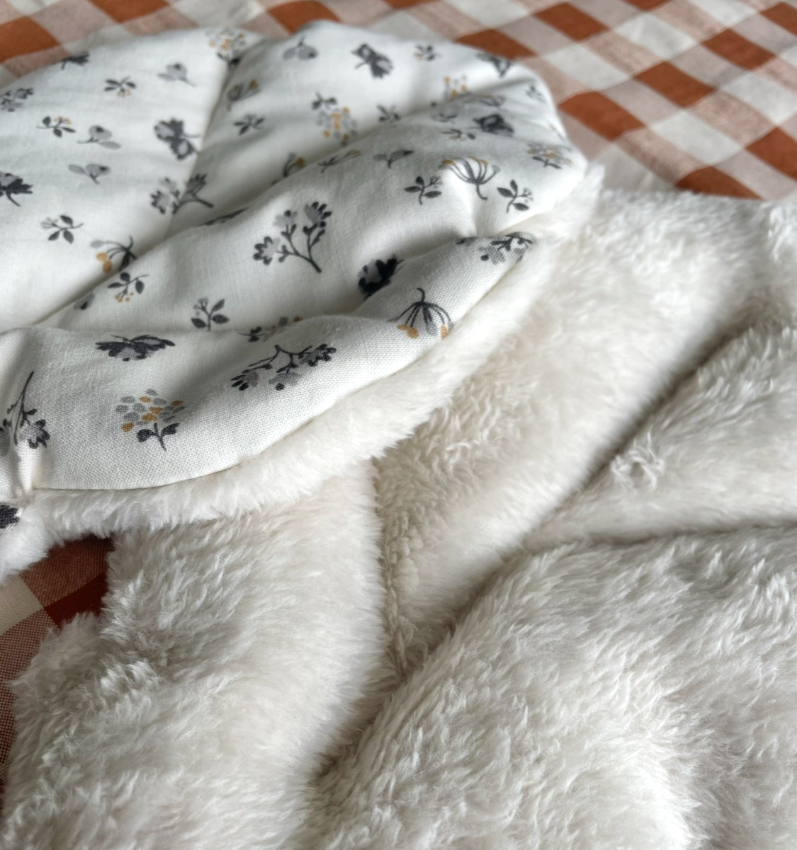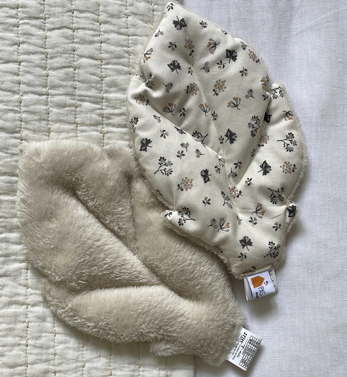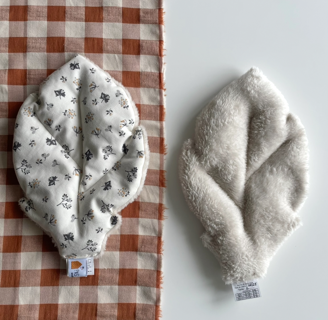 Les deux faces sont, comme toujours chez Pas si Sages…, différentes: le plus souvent une face en coton et l’autre en velours de polaire si doux ou teddy ou fourrure.