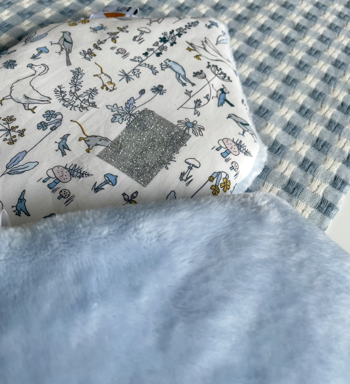 Les deux faces sont, comme toujours chez Pas si Sages…, différentes: une face en coton et l’autre en velours de polaire si doux, ou fourrure, ou teddy.