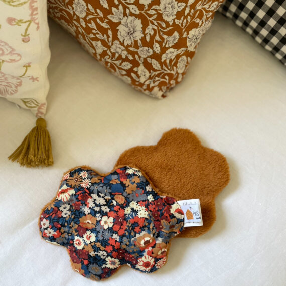 Les deux faces sont, comme toujours chez Pas si Sages…, différentes: le plus souvent une face en Liberty ou tissus imprimé et l’autre en velours de polaire ou fourrure si doux.