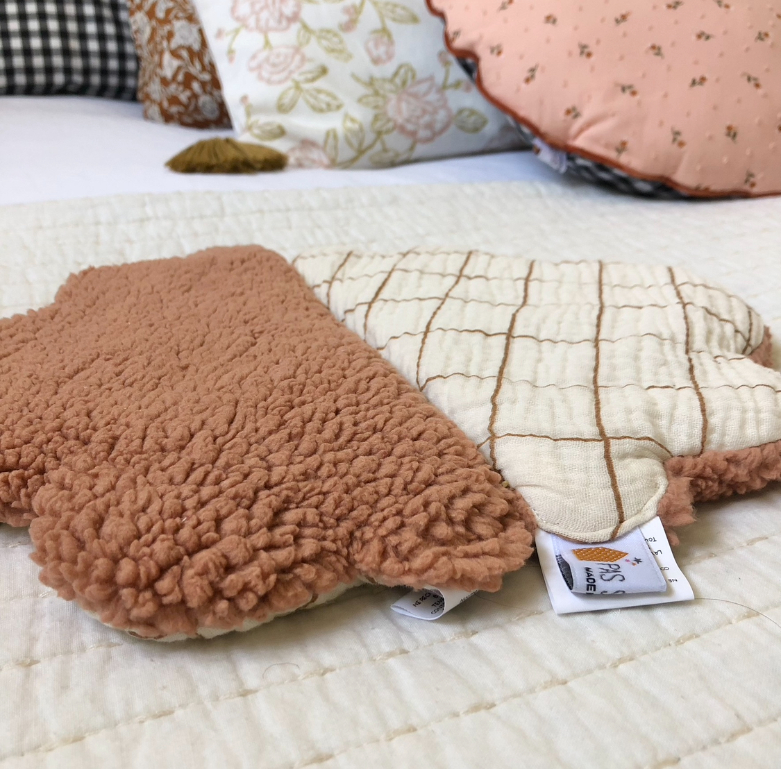 Les deux faces sont, comme toujours chez Pas si Sages…, différentes: le plus souvent une face en coton et l’autre en velours de polaire si doux ou teddy ou fourrure.
