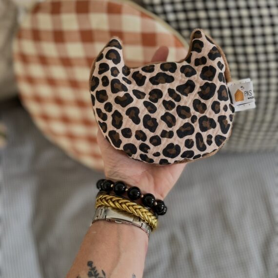 Les deux faces sont, comme toujours chez Pas si Sages…, différentes: le plus souvent une face en Liberty ou tissus imprimé et l’autre en velours de polaire ou fourrure si doux.