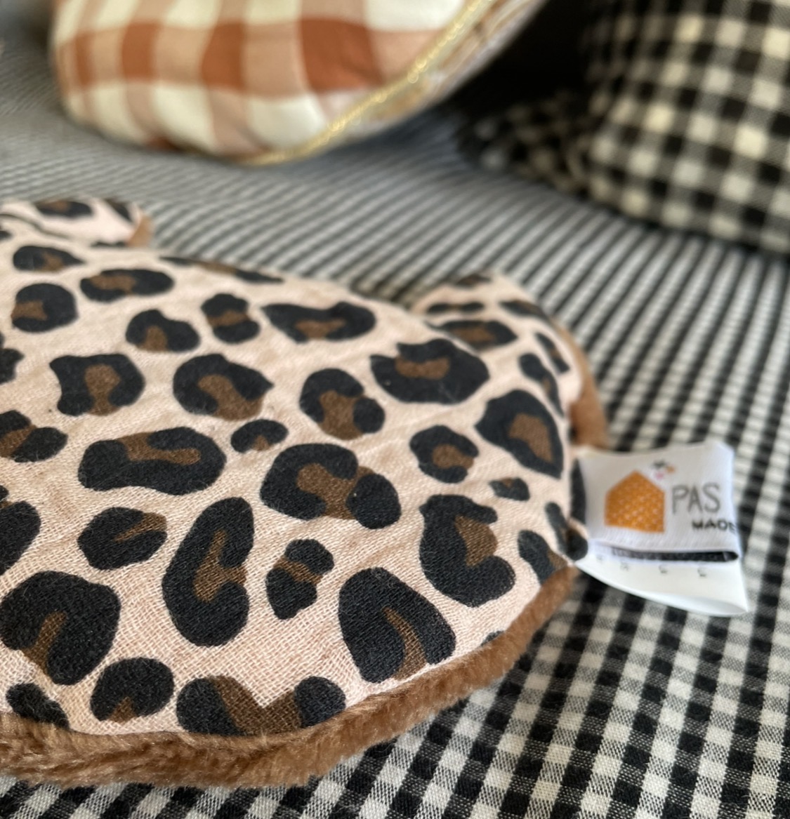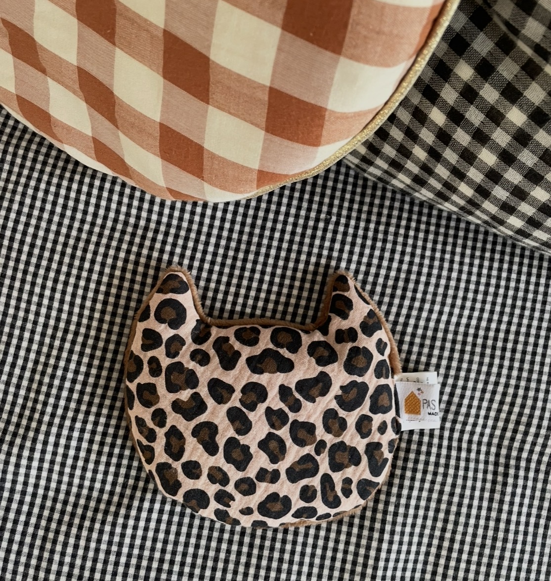 Les deux faces sont, comme toujours chez Pas si Sages…, différentes: le plus souvent une face en Liberty ou tissus imprimé et l’autre en velours de polaire ou fourrure si doux.